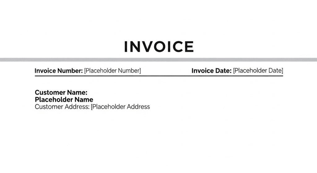 Insert an Invoice Title (e.g., “TAX INVOICE” or “INVOICE”). On the right side, add:
