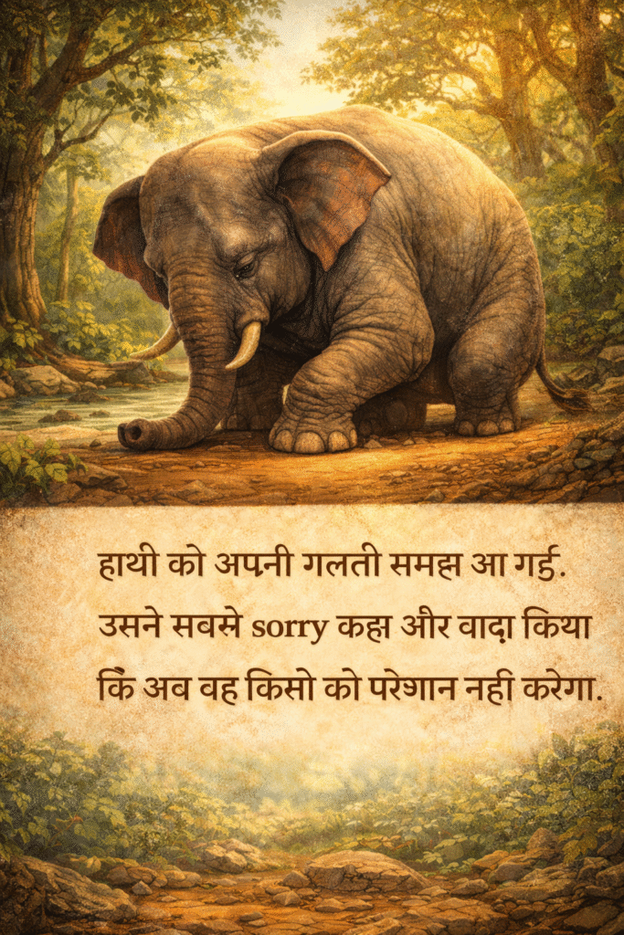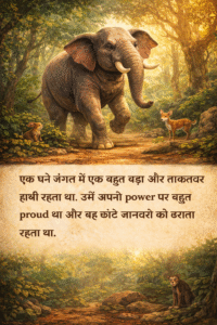 एक घने जंगल में एक बहुत बड़ा और ताकतवर हाथी रहता था।
