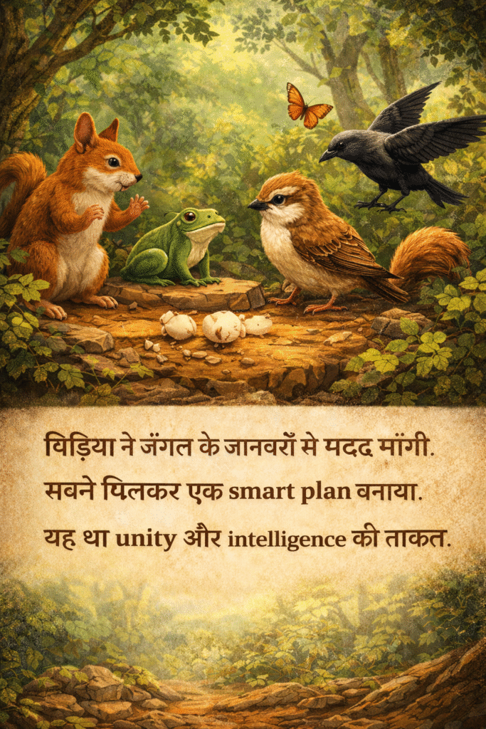 चिड़िया बहुत sad थी, लेकिन उसने हार नहीं मानी।